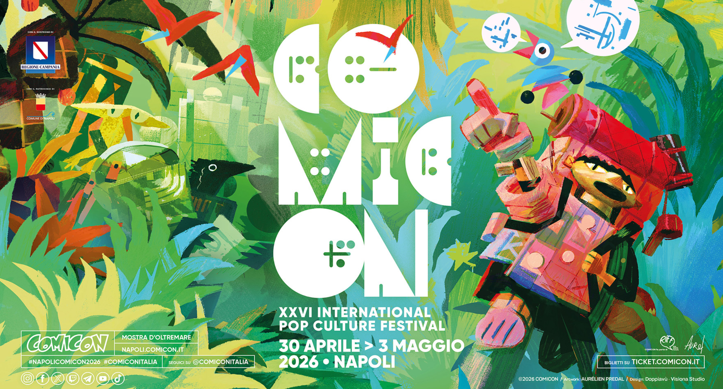 Il poster dell’edizione è firmato da Aurélien Predal, noto direttore artistico di capolavori Pixar, Sony e Dreamworks (Spider-Man: Across the Spider-Verse, Inside Out 2), al centro anche di una mostra e una Masterclass. Il ruolo di Magister 2026 è affidato a Leo Ortolani (Rat-Man), che sarà celebrato con una grande mostra retrospettiva, incontri e iniziative speciali.