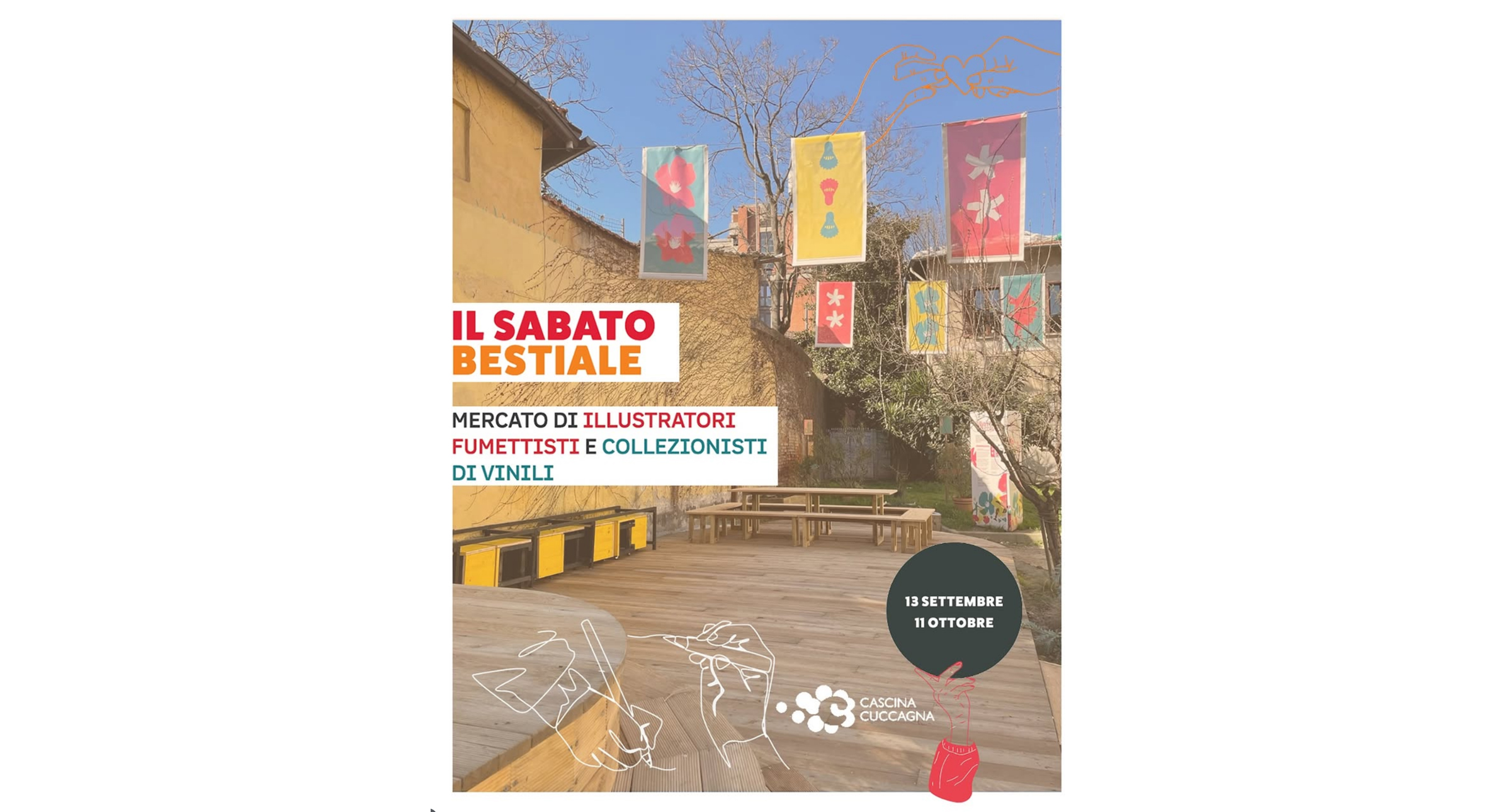 Sabato 13 settembre e sabato 11 ottobre dalle 16 alle 22, due giornate dedicate all’illustrazione e alle cose belle. Stampe, poster, sketchbook, serigrafie, cianotipie, originali, albi illustrati, fanzine, fumetti, collage, origami, tatuaggini e un sacco di altre meraviglie realizzate a mano e con il cuore accanto a imperdibili collezioni di vinili. Un mix di carta chine musica e sorprese, un mercato strano e bellissimo selezionato con cura e amore da UAU Festival e i Distratti. Oltre all’area market durante gli eventi potrai sperimentare con i workshop di Veronica Cerri, Marianna Dall’Angelo, Roberta Rigoni e Margherita Tofanelli e rilassarti all’area food & drink aperta per tutta la durata dell’evento.